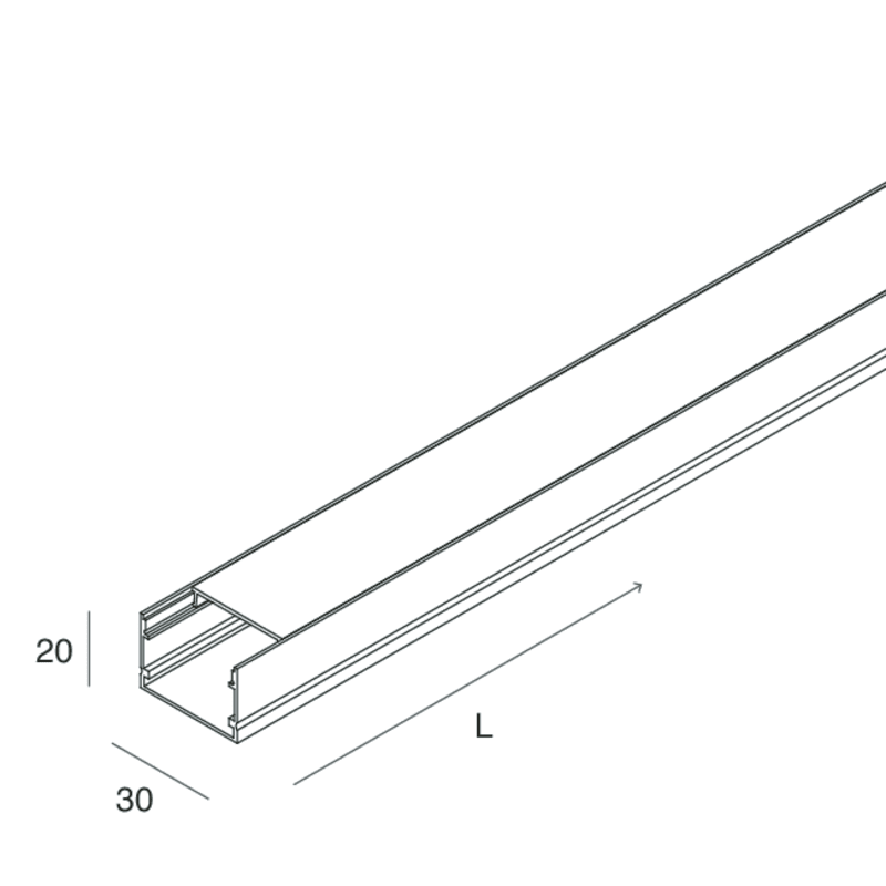 PROFILED MACRO :Profilo dissipante per Strip LED doppia pista 25W/m, in lega di alluminio anodizzato naturale o verniciata bianca, testate di chiusura in polimero termoplastico, schermo diffusore ad inserimento a scatto in PC opale. Schermo diffusore, testate di chiusura e 4 staffe di fissaggio inclusi. Strip LED e alimentatore 24Vdc da ordinare a parte. Non esporre a intemperie o luce solare diretta e non inserire in materiale isolante.