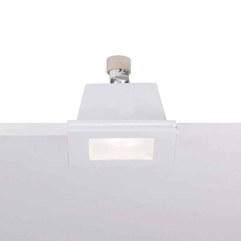 Faretto ad incasso in gesso rasato a scomparsa totale. Disponibile in versione tonda e quadrata, con vetro a protezione della fonte luminosa per un effetto di luce diffusa. Attacco GU10 che consente di montare lampadina LED. Cassaforma per installazi onein muratura da ordinare come accessorio.