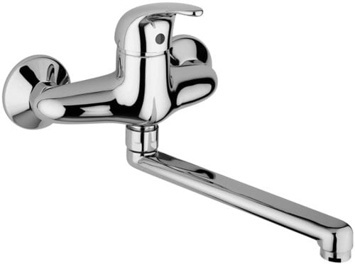 Miscelatore lavello a muro con canna tubo diritta orientabile l.200mm, completo di: • aeratore M24x1 • attacchi 1/2”G. Finitura cromo