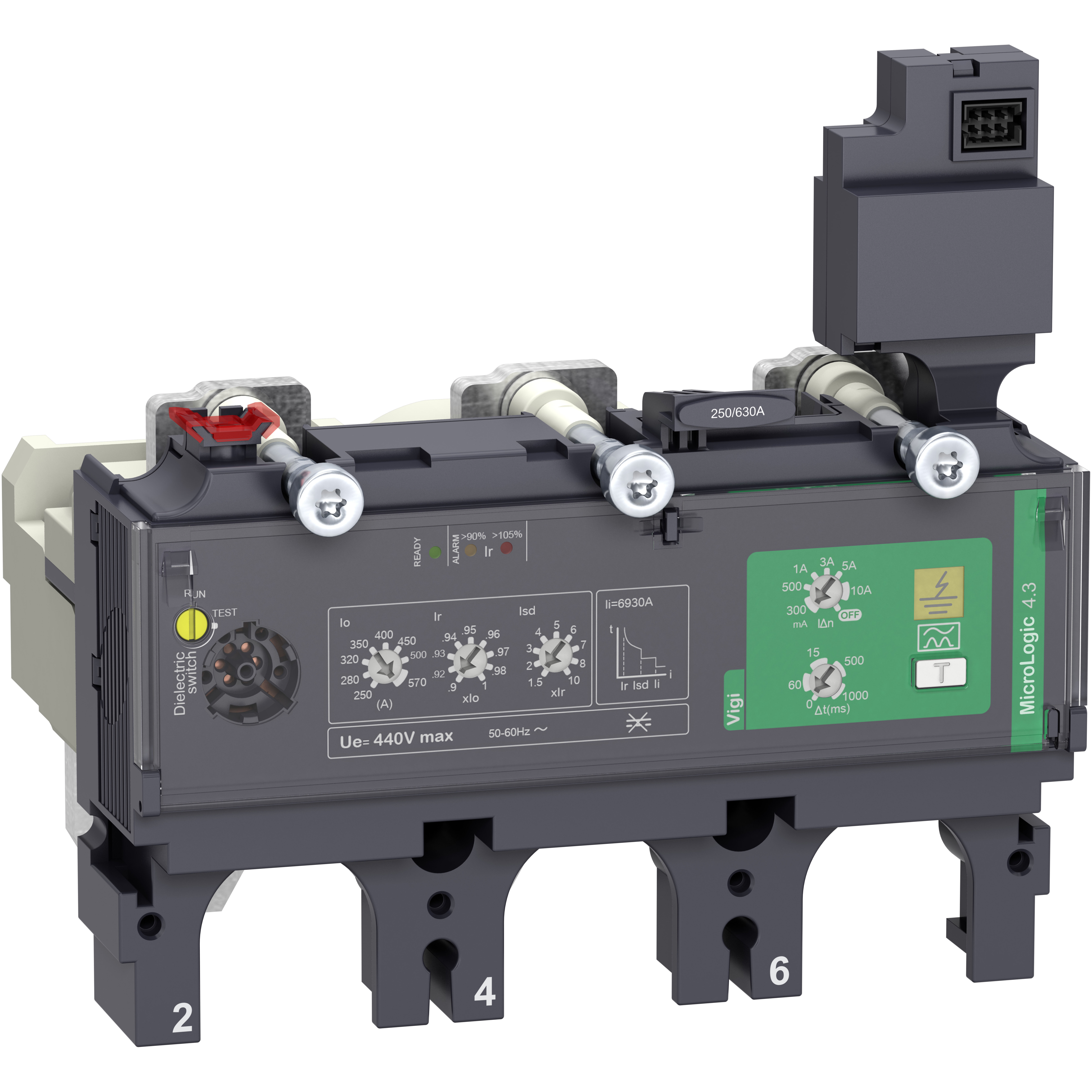SCHNEIDER ELECTRIC - SNRC6334V570 Sganciatore MicroLogic Vigi 4.3, ComPacT NSX 630, 3 poli, protezioni elettroniche di base e per correnti differenziali, valore nominale 570A - C6334V570