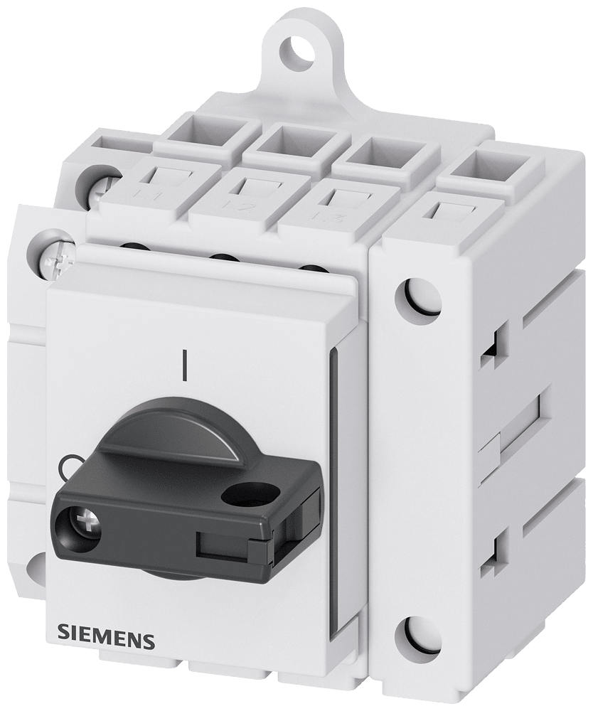 sezionatore sottocarico 3LD3, Iu 63 A interruttore principale a 3 poli + N potenza di impiego nominale per AC-23 A con 400V 22,0kW montaggio in quadro di distribuzione interruttore base con comando a leva nero con blocchetto di contatti ausiliari 1NO+1NCInterruttori principali e di OFF di emergenza SENTRON 3LD3 per la disinserzione sicura dei carichi in numerosi settori, ad es. per motori trifase, impianti di climatizzazione e ventilazione, quadri di comando e elettrici, in particolare per piccole macchine quali segatrici, compressori, pompe, betoniere, trapani, fresatrici o macchine per la lavorazione del legno. Struttura modulare, montaggio semplice e rapido di blocchetti di contatti ausiliari, morsetto PE/N o 4º polo. Ottimale sezionamento dalla reteda 16 A a 63 A grazie alla lucchettabilità del comando rotativo. Versatilità dimpiego grazie alle approvazioni internazionali. Una grandezza costruttiva meccanica per cinque grandezze costruttive elettriche. Gli interruttori principali e gli interruttoridi OFF di emergenza 3LD sono disponibili in molteplici varianti per il fissaggio frontale, su piastra di montaggio, su guida DIN o montaggio in quadro di distribuzione, a scelta con comando rotativo bloccoporta diretto o rinviato. I 3LD2 sono disponibilianche con varianti per applicazioni in corrente continua. Interruttori principali e di OFF di emergenza 3LD - Sicurezza integrale per utenti e sistemi.
