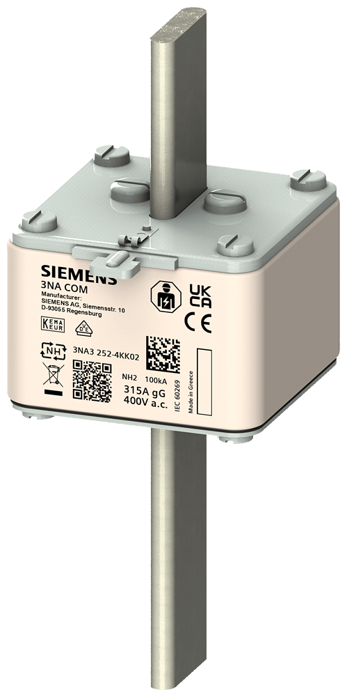 cartuccia fusibile NH 3NA COM con funzione di misura con comunicazione wireless grandezza costruttiva 2 250A Un 400V classe di impiego gG senza modulo di elettronica attacchi sotto tensione segnalatore di intervento frontale Cartuccia fusibile NH SENTRON3NA3 per la protezione selettiva dei cavi e dellimpianto. Il sistema di fusibili NH offre una protezione efficace per le persone, gli apparecchi e gli impianti grazie alla disinserzione sicura in caso di sovraccarico e cortocircuito. I fusibili 3NA COM consentono un elevato livello di trasparenza di rete grazie alla misura di corrente e alla comunicazione wireless e sono quindi particolarmente indicati per la digitalizzazione delle reti elettriche. La forma costruttiva normalizzata consente un retrofit semplice ed economico nei sistemi esistenti. Le cartucce fusibili NH sono disponibili da 2 A a 1250 A e nelle grandezze costruttive 000, 00, 0, 1, 2, 3, 4 e 4a. Le varianti con funzione di comunicazione e di misura nella grandezza costruttiva 2 da 80 A fino a 315 A. Dispositivi di protezione SENTRON - Una scelta sicura. Ora ancora più intelligenti.