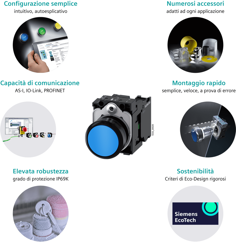 SIEMENS - SIE3SU11030AB601BA0 Pulsante, illuminato, 22 mm, rotondo, in plastica, colore bianco, 1NO, AC 110 V - 3SU11030AB601BA0
