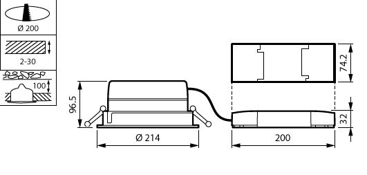 D (per montaggio in impianti industriali con pericolo di incendio per polvere o fibre EN 60598-2-24):