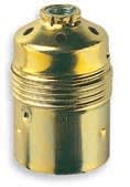 Portalampade E27, raccordo M10x1 con vite di blocco e morsetto di terra sul cappuccio, cappuccio e camicia liscia acciaio zincatolucido colore ottone