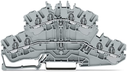 Morsetto a due piani per 4 conduttori; Morsetto passante/passante; L/L; senza portaetichette; per guida DIN 35 x 15 e 35 x 7,5; 2,5 mm²; Push-in CAGE CLAMP®; 2,50 mm²; grigio